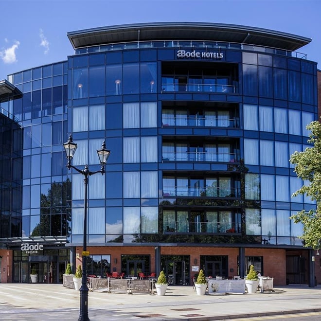 Abode Chester is centrally located on the edge of Chester’s historic race course in the heart of Chester city centre. The 85 bedrooms are designed and fitted to ABode's high standards and boast magnificent views of Chester and the Welsh hills. Enjoy relaxed, sophisticated dining that moves effortlessly from day to night in the Brasserie Abode located on the fifth floor of the hotel.
