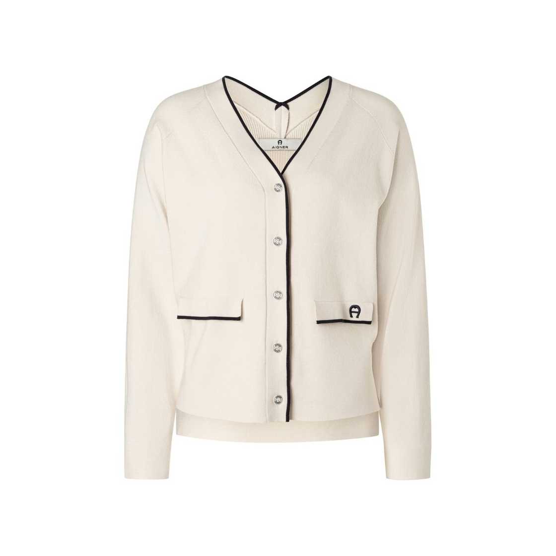 Damen Strickjacke in Macadamia White und Black