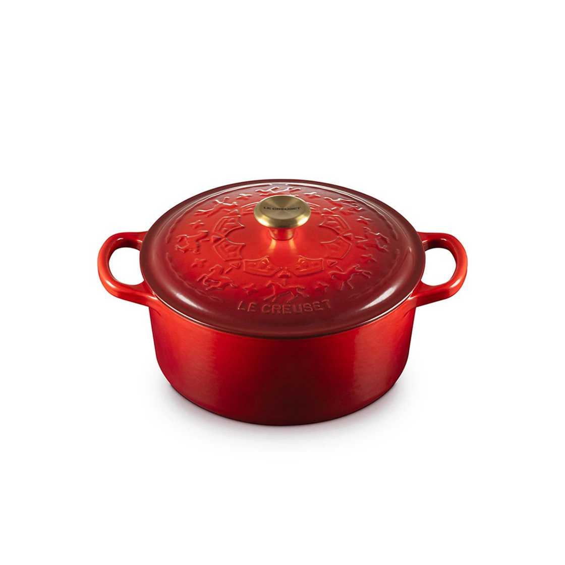Gusseisenbräter rund Signatur 22cm, Design Year of the Horse, Farben Kirschrot oder Cotton