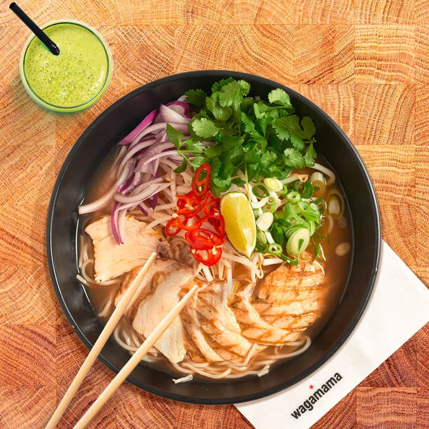 wagamama ist ein Ort, an dem Essen Menschen zusammenbringt. Viele unserer Gerichte sind zum Teilen gedacht, also versammeln Sie Ihre Freunde oder Familie und genießen Sie die positive Atmosphäre an unserem Tisch.