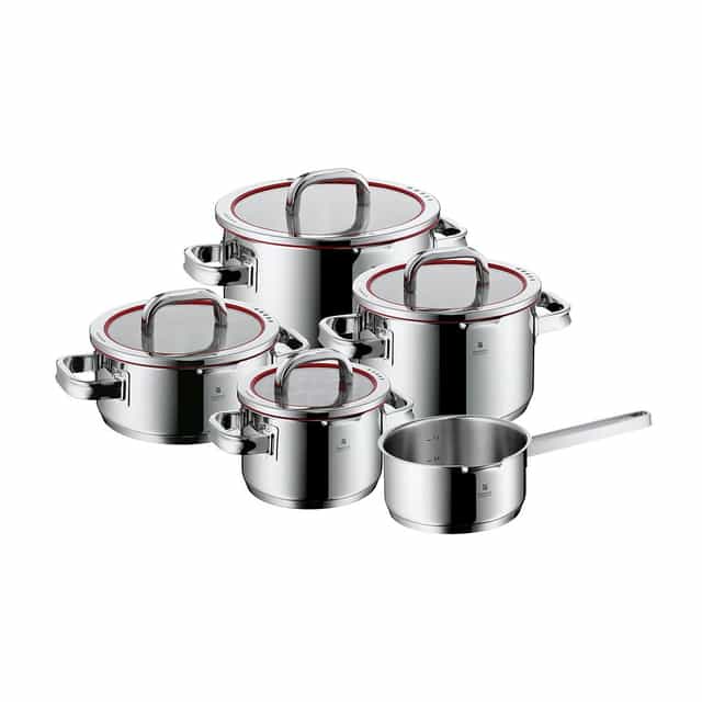 Das Sortiment von WMF ist sehr vielseitig; Pfannen und Pfannen, Küchenmesser, Besteck, Küchenutensilien und diverse Karaffen sowie Elektrokleingeräte wie Wasserkocher, Grills, Mixer etc.