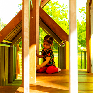 Während Sie sich entspannen und ein leckeres Getränk auf der Terrasse direkt daneben genießen, können sich Ihre Kinder auf unseren Rutschen, dem eingebauten Minitrampolin oder in einem unserer Holzspielhäuser vergnügen.