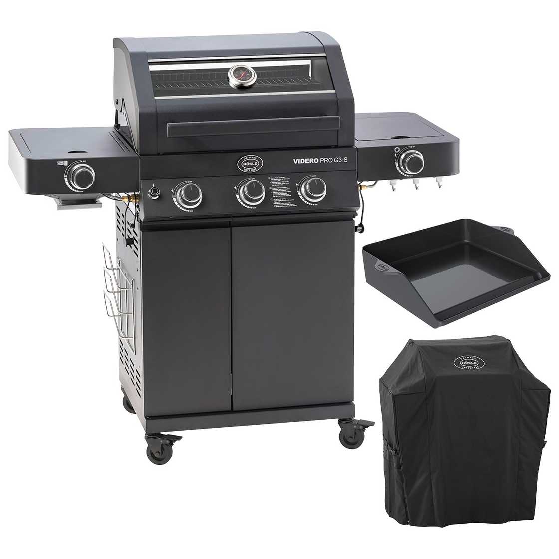 BBQ Station Videro Pro G3-S with accessories (incl. cover + plancha grill plate or cover + premium rotisserie)