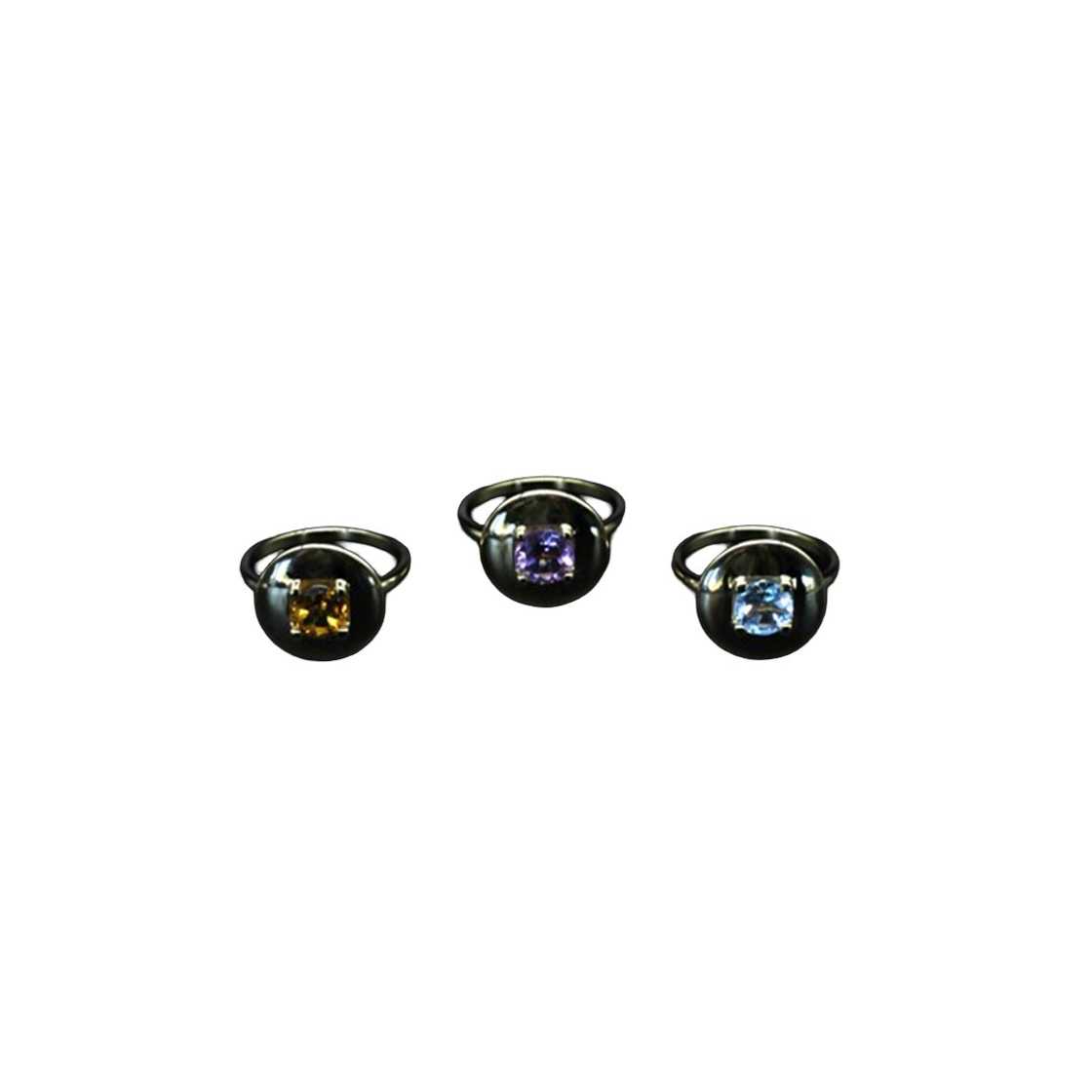 Sterling silver rings with fine 18-karat gold plating and precious stones: blue and white topaz, garnet, peridot, amethyst, and citrine. Designed in the unique ARDECO HOME style. Handmade, licensed ARDECO jewelry pieces available in limited editions.