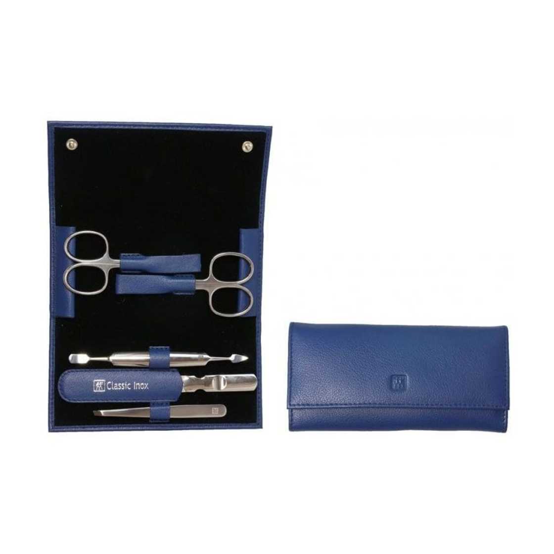 Nail maintenance set, 5-pieces, in snap case, in the colors blue, pink or green