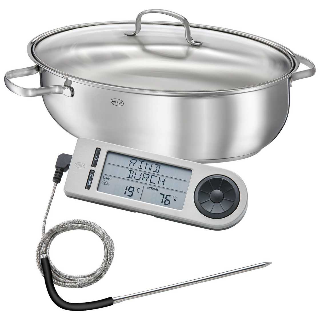 Oval roasting pan ELEGANCE with glass lid + roasting thermometer