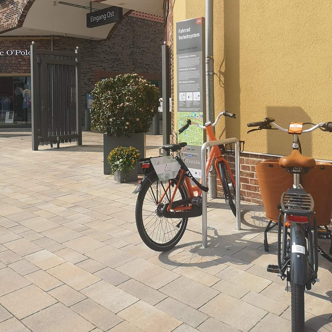 The best way to get around Münsterland is by bike and now it’s even easier with the public bike rental system in Ochtrup! Renting a bike is quick and easy. Register online at www.donkey.bike or download the donkey.bike-app directly to your smartphone. The rental bike can be used immediately after payment with a credit card or PayPal. Simply unlock your chosen bike and off you go! Directly to and from from the rental bases at Ochtrup train station and the Designer Outlet Center eastern entrance. Quick and easy by road or cargo bike.