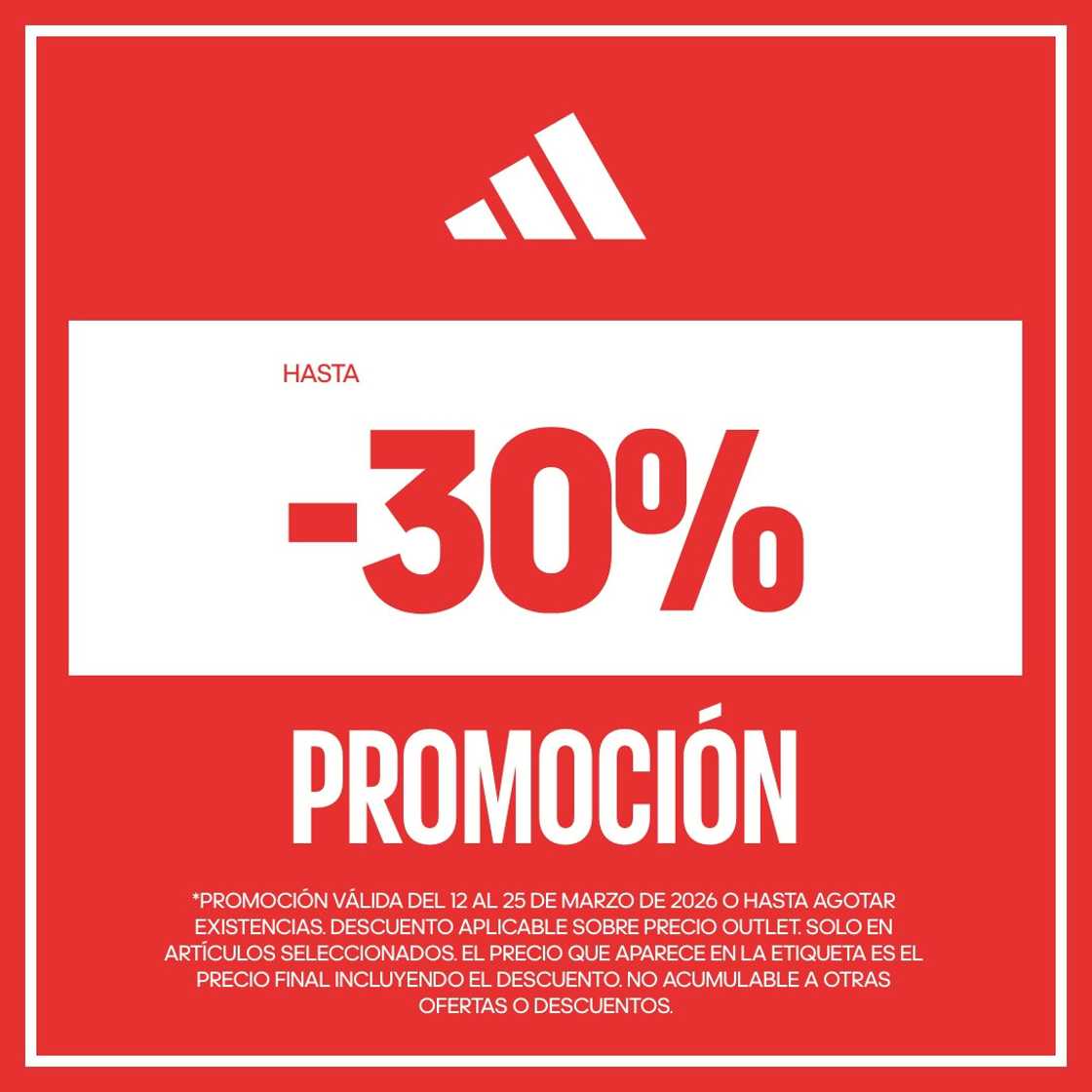 Up to 30% discount on outlet prices on selected items.