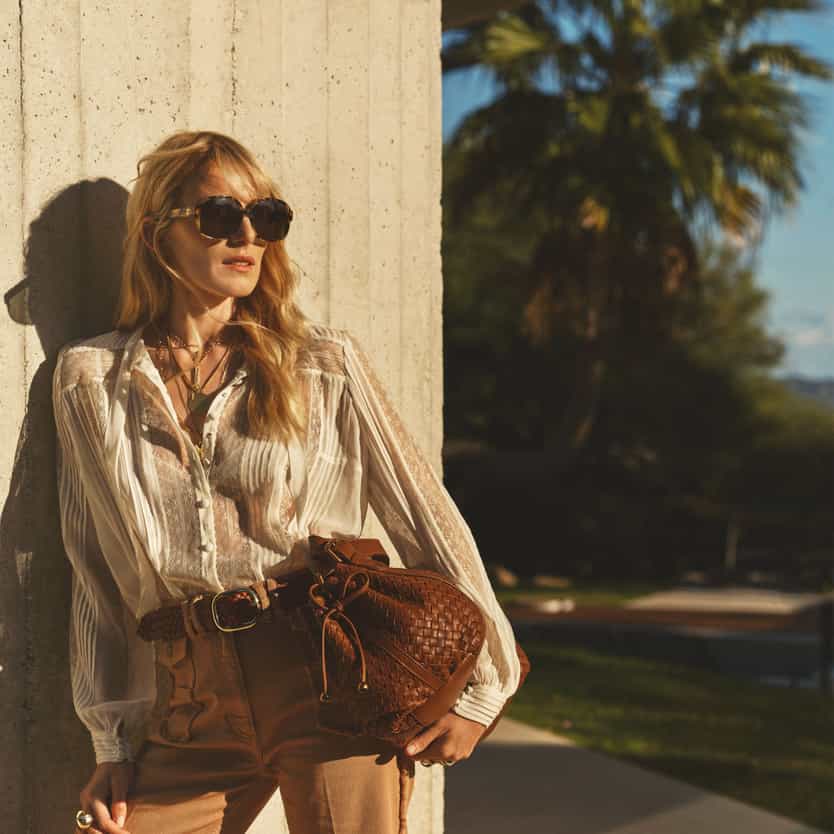 In the men’s jacket she casually throws over her shoulder, the Anna suede jeans that hug her, or the movement of her lace shirt, lies all the sincerity of style, a taste for simplicity, and the attention to detail that defines the look according to Darel.
