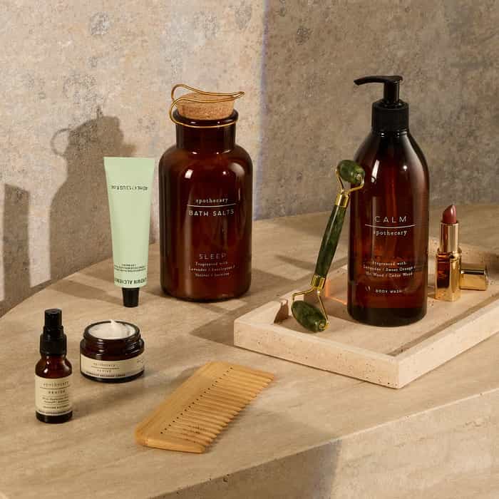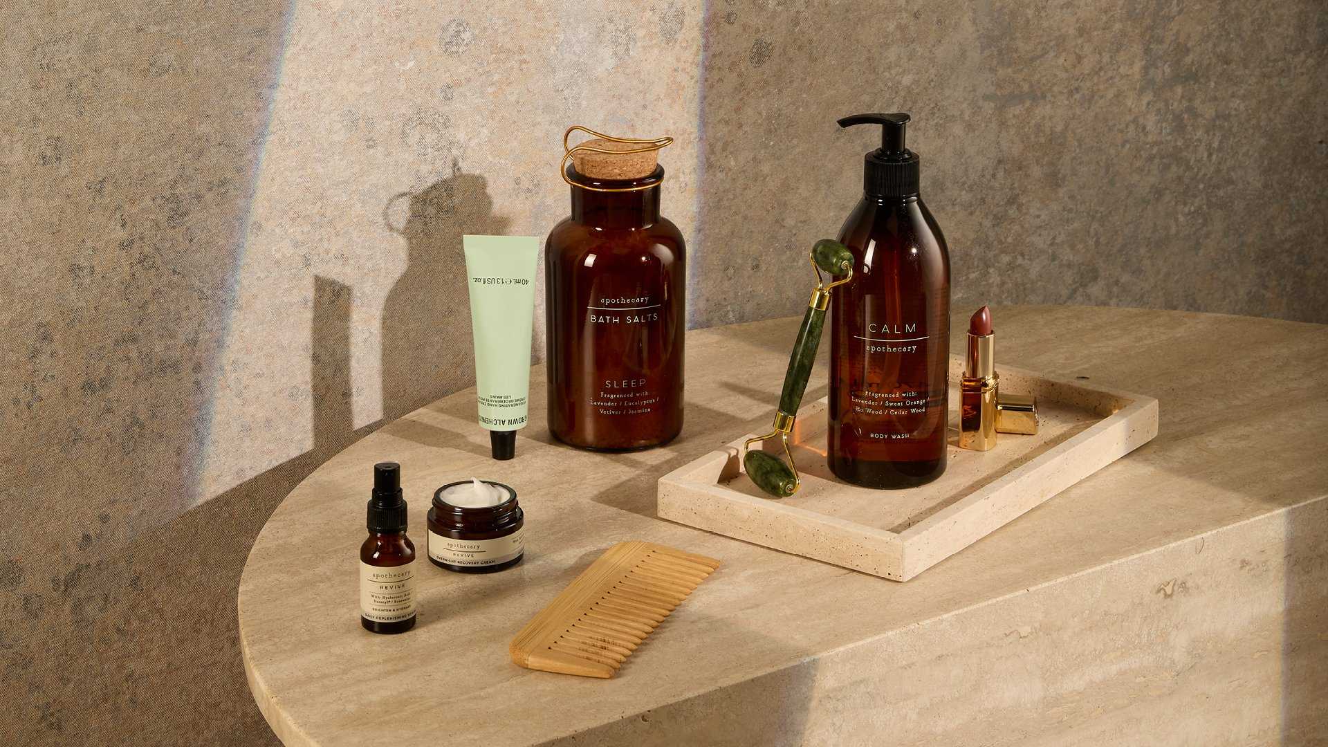 Body lotions and wellness accessories with enveloping textures and comforting scents.