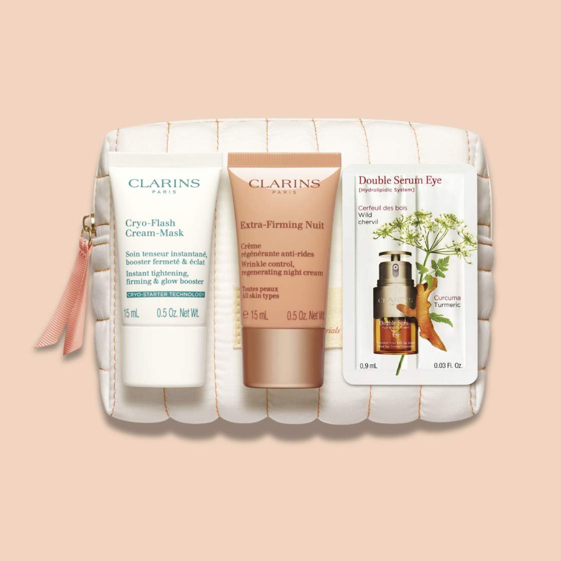 A pouch and 2 free products with purchases of €90 or more for the first 250 customers