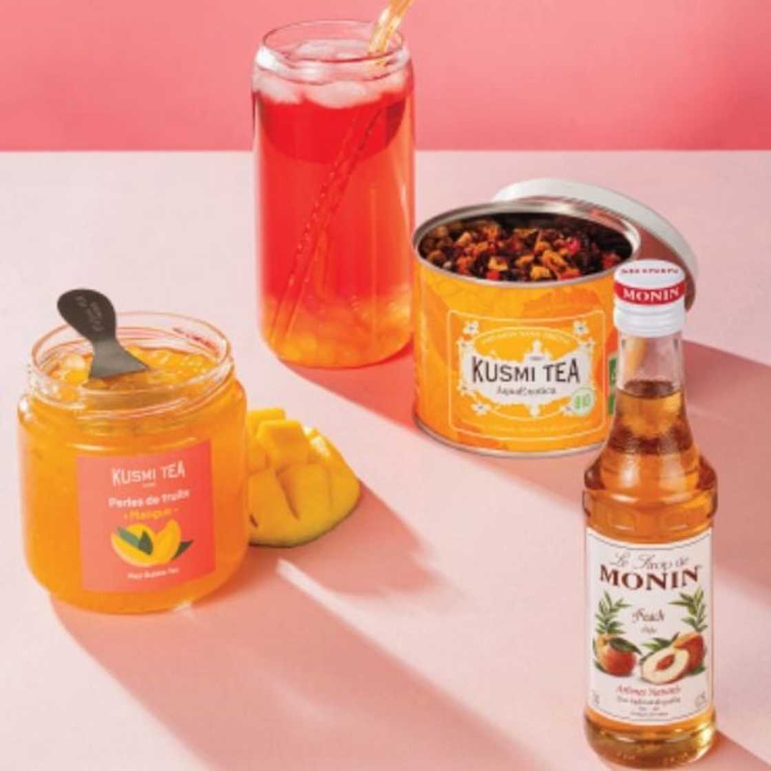 A 100g box of tea, a Monin syrup of your choice, and a jar of fruit pearls of your choice at 10% off.