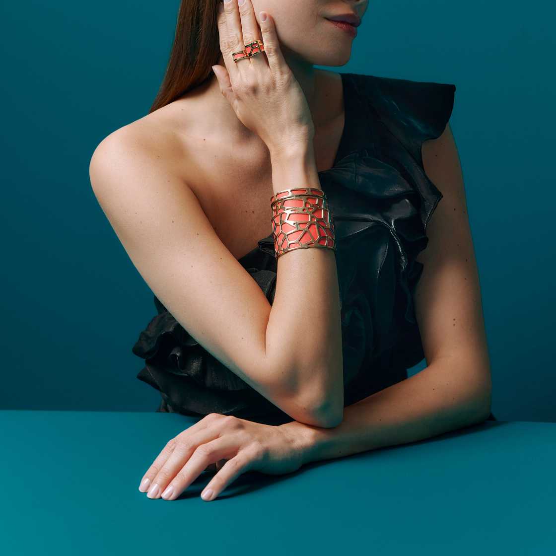 Les Georgettes jewellery offers three styling options: First, you can wear the pieces on their own or as a set, without any leather. Second, you can customize them by adding interchangeable leather in reversible colours. By inserting the leather into your jewel, you instantly change its colour. It’s that simple – a one-of-a-kind, made-to-measure piece of jewellery, just for you!
