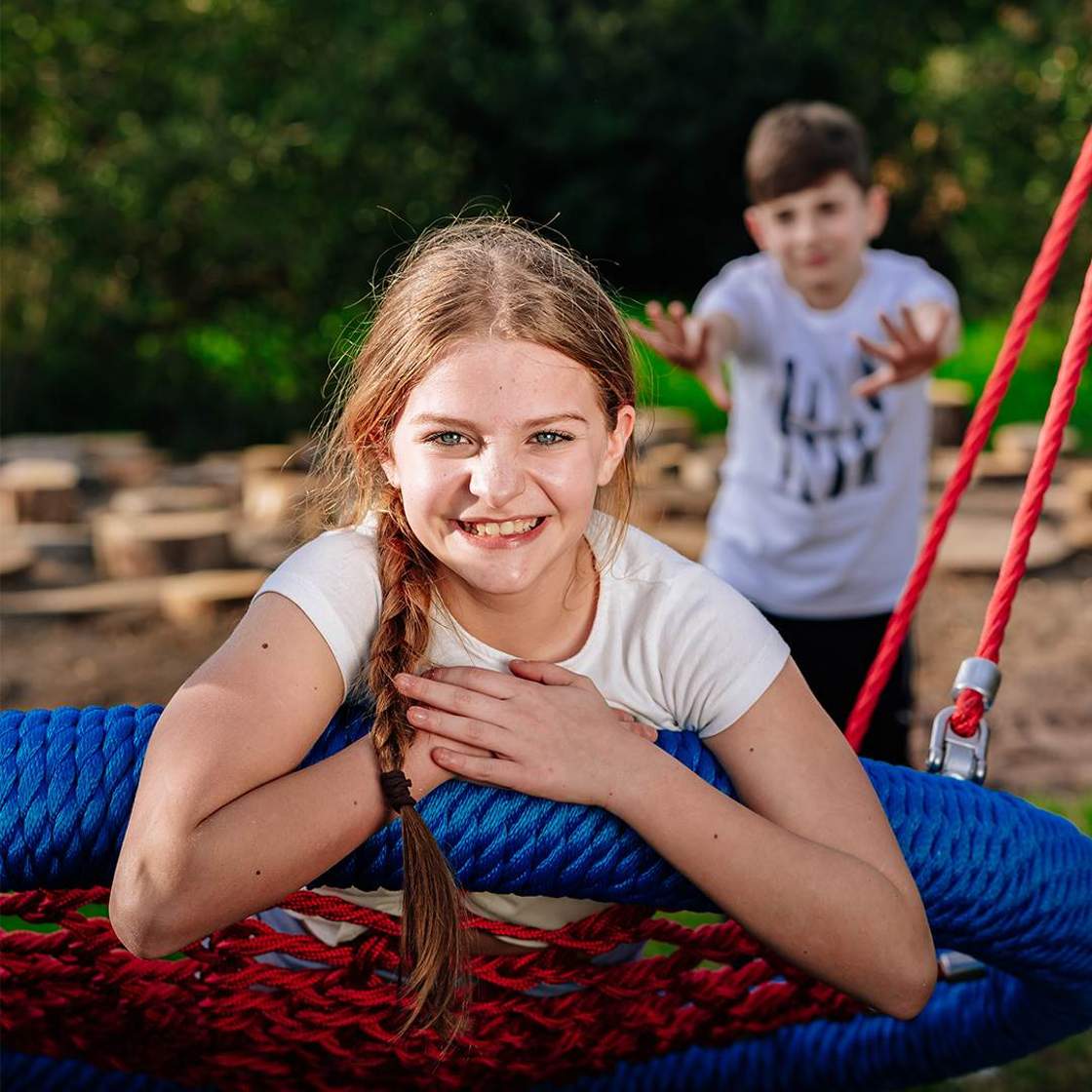 In the first Playground Natura, they will be able to cross the magical Path of the Senses barefoot and jump between the logs of the Great Trunk. They will be able to climb safely on the beloved Spider's Web or enjoy the colourful swing.