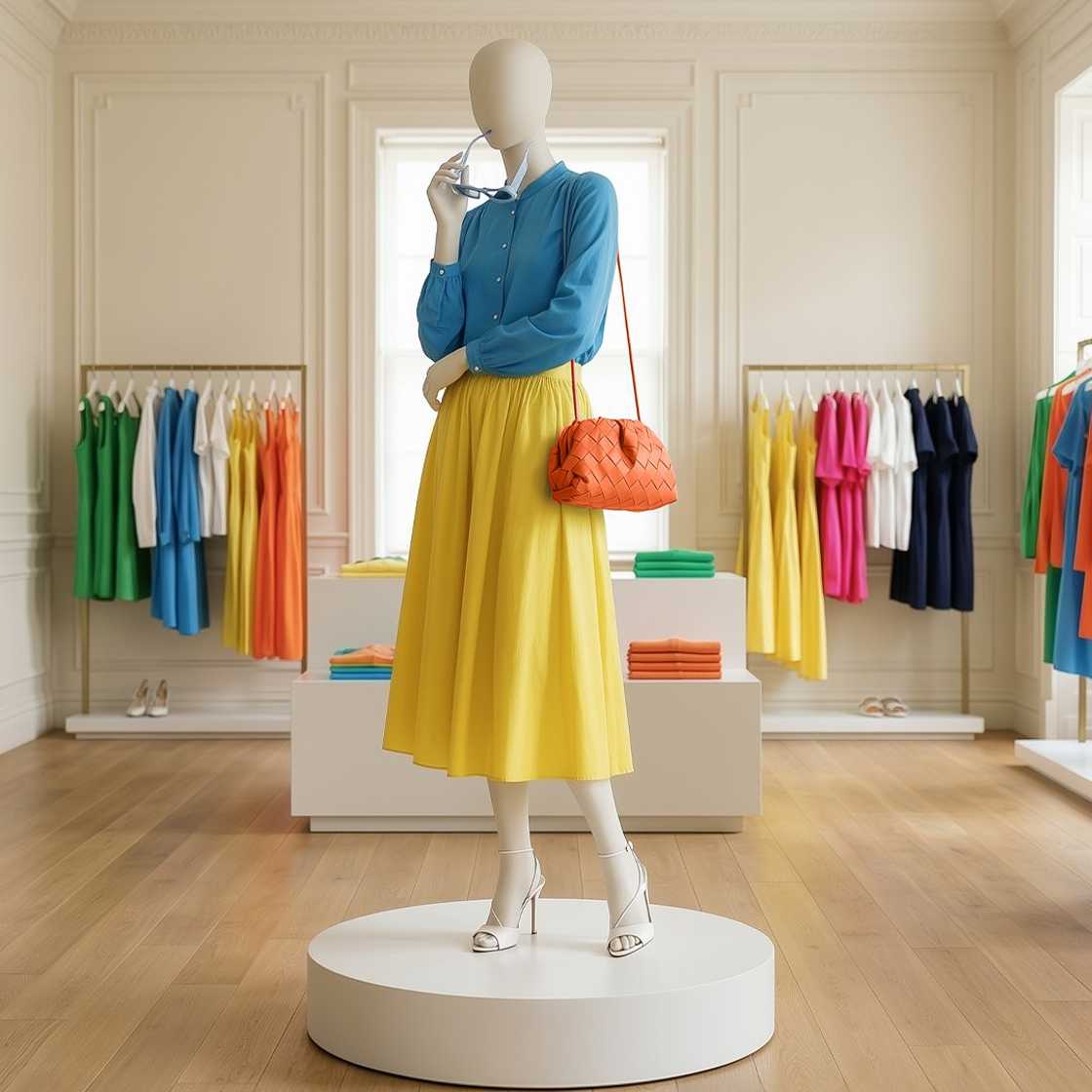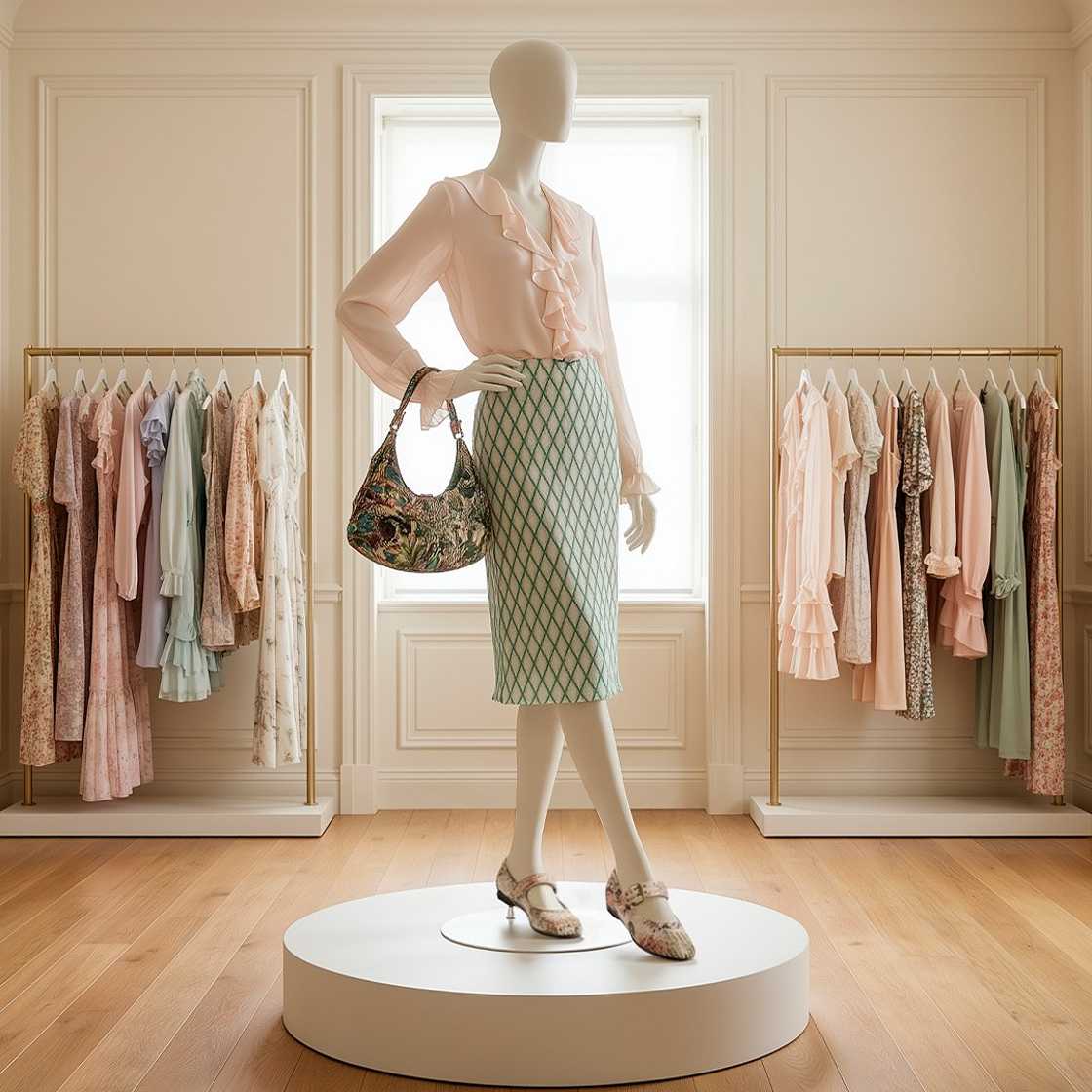 From the shows at Ralph Lauren to Bottega Veneta, we were given a lesson in minimal colour for maximum result. This SS26 trend is about stark contrast, with black and white key pieces paired and layered allowing texture and (often asymmetric) shape to take centre stage. Voluminous silhouettes and draped fabrics become summer hits day and night. Look to cut-away hems, one-shoulder detailing and brave volume. Our top tip? When accessorising, choose clean and simple jewellery – think chunky hoops or a single chain necklace – to keep the attention on the pared-back but powerful palette.