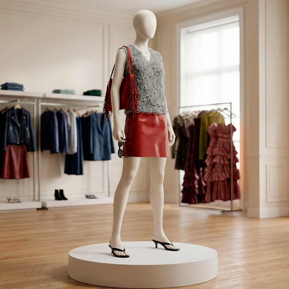 Playful finishes, from the fringed to the fuzzy, dominate this textured trend with clothes and accessories given a tactile flourish. The key looks to have on your radar? Fringe and feathered jackets. Tassel dresses, skirts and blouses. Soft panel detailing on clothes and bags. Plan your next visit around an “oooh, is it soft?” encounter, and choose tassel-edged lightweight outerwear and feather key pieces all for up to 60% less. Hold the smooth, for now. Forgo the winter thickness, too. You’ll nail this trend with lighter, soft-touch ensembles in rich browns or navy and fresh pink tones.