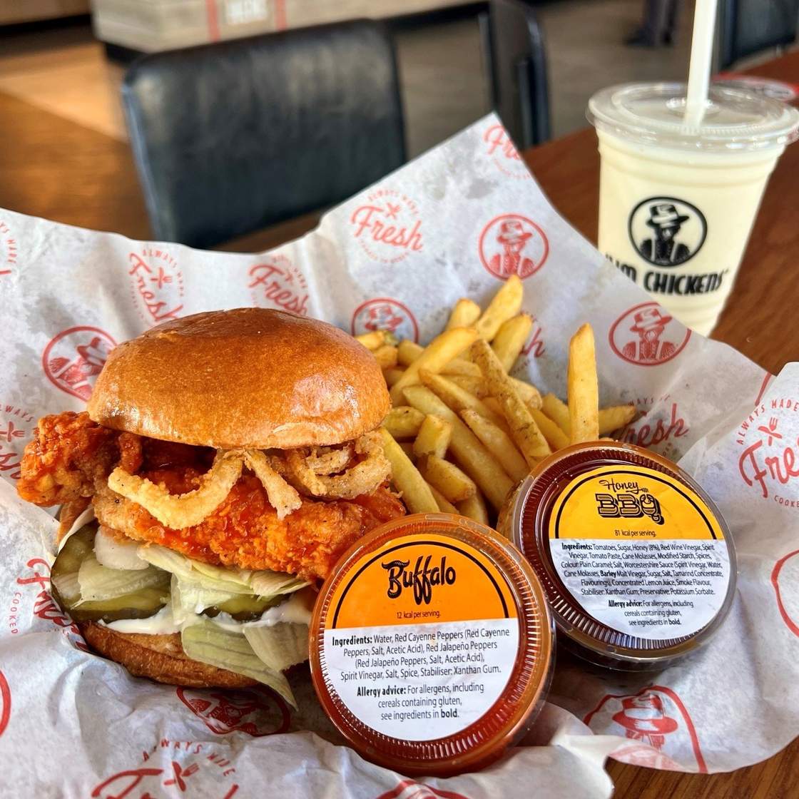 Famous for their fresh, buttermilk marinated, chicken tenders, sandwiches and hot wings and 14 house sauces. From Blue Cheese to Spicy BBQ there is something for everyone. Perfect for a quick meal with the family or catching up with friends. Bringing a dose of Southern hospitality to all.