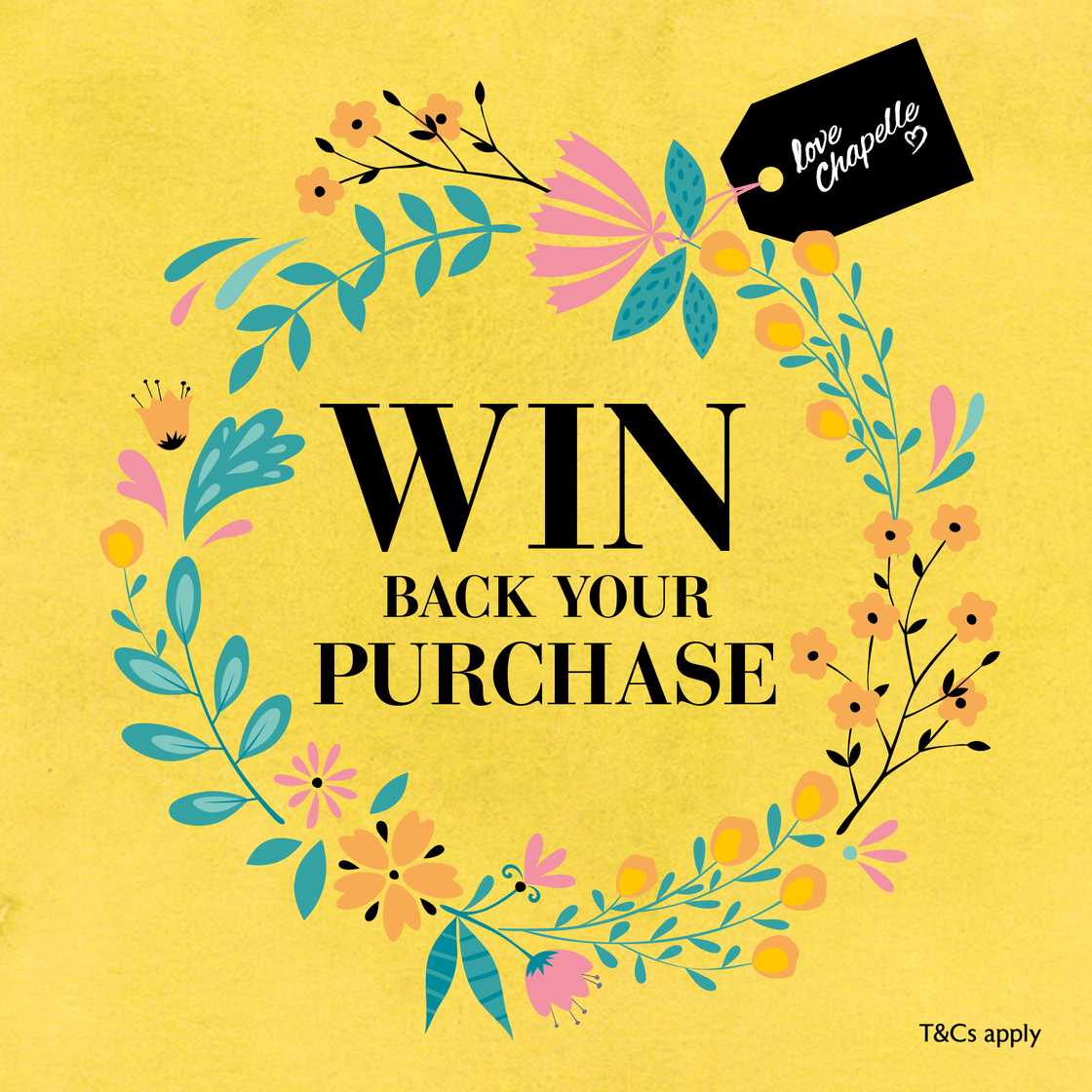 Make any purchase at Chapelle for your chance to win back your purchase of any value! Chapelle are drawing 10 winners each week