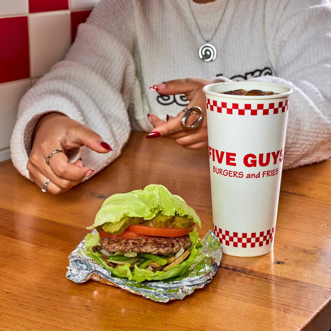 Indulge in the £10 lettuce wrap and burger and coke deal at Five Guys!