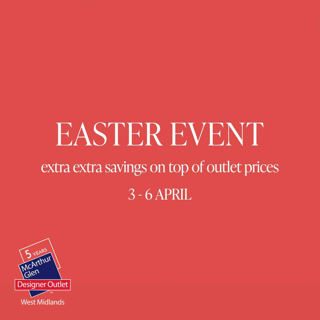 Make a day of it this Easter weekend and celebrate our 5 Year Anniversary with us. Enjoy even greater savings, delicious dining and family-friendly entertainment all in one place. Plan your visit today and discover why McArthurGlen West Midlands is the perfect place to shop, save and spend time together.