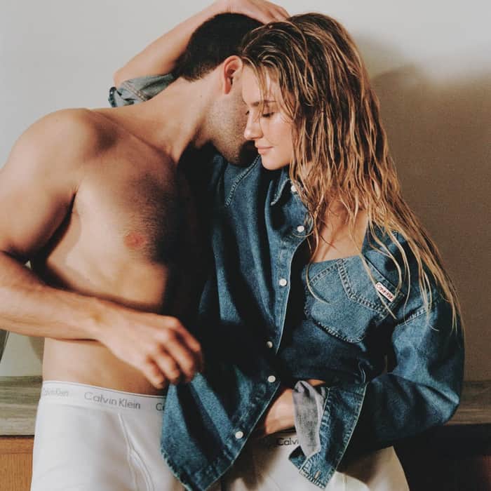 Grace Van Patten and Jackson White share intimate moments in coordinated comfort in the latest Calvin Klein drop.