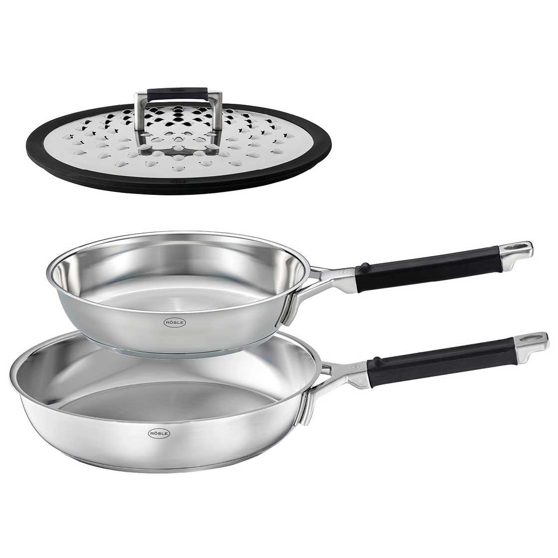 *SILENCE-PRO 3-delige set - roestvrijstalen pannen met een diameter van 24 cm en 28 cm en spatbescherming