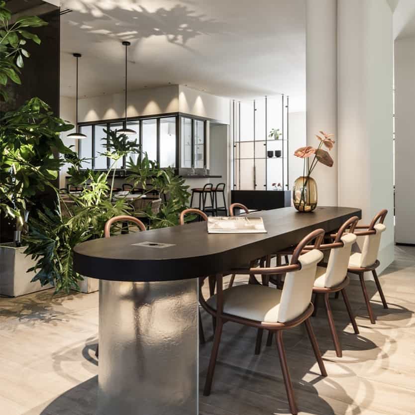 多功能空间,包括私人会议室、休闲区、带私人更衣室的美容室和大露台。舒适的座椅和设备齐全的桌子为智能办公和商务会议创造了理想的环境。